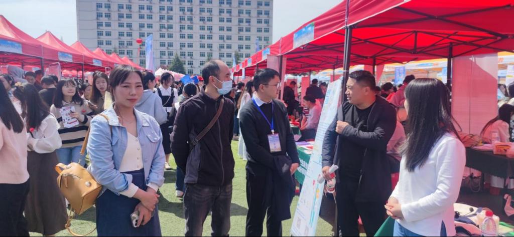 为贯彻落实党中央、国务院关于“稳就业”、“保就业”决策部署,搭建用人单位和毕业生双向选择交流平台,更好地满足用人单位的人才需求,4月8日上午,“河南省毕业生就业市场豫南分市场暨信阳师范学院2023届毕业生春季双向选择洽谈会”在我校西运动场隆重举行,beat365官网2023届全体毕业生积极踊跃参加。beat365官网党委书记兰洋,副书记周刚,副院长张伟、张江波,院长助理甘露,辅导员郑波到现场指导就业工作。