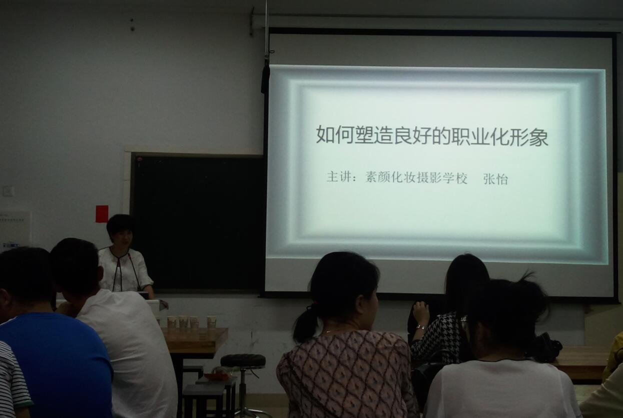 5月12日晚,应beat365英国官方网站邀请,素颜化妆摄影学校张怡老师于艺术楼306室开展 “如何塑造好良好的职业形象”专题讲座,团委副书记张锐及部分学生代表出席了本次讲座。