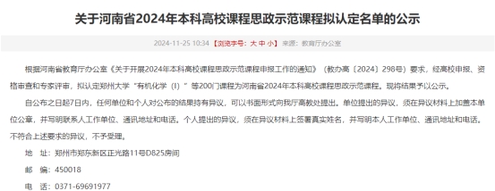11月25日,河南省教育厅办公室发布《关于河南省2024年本科高校课程思政示范课拟认定名单的公示》的通知,beat365官网教师郑蔚的《书籍设计》课程被认定为河南省2024年本科高校课程思政示范课程。