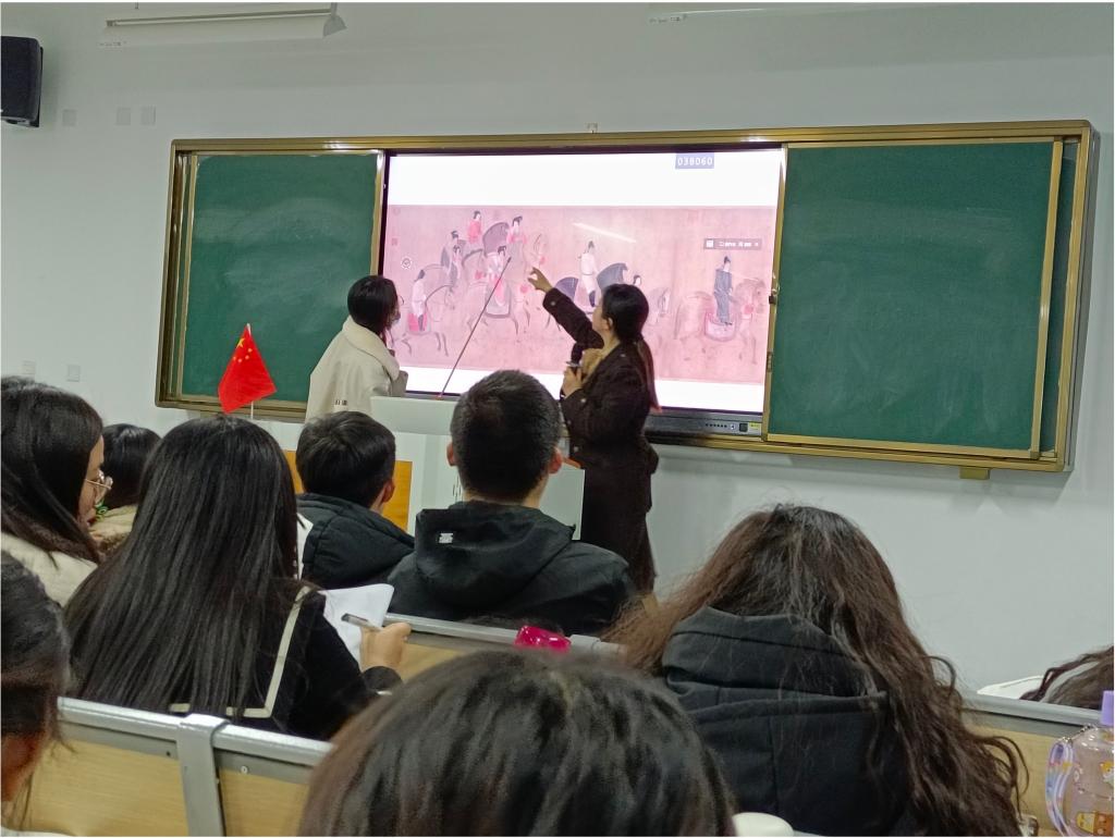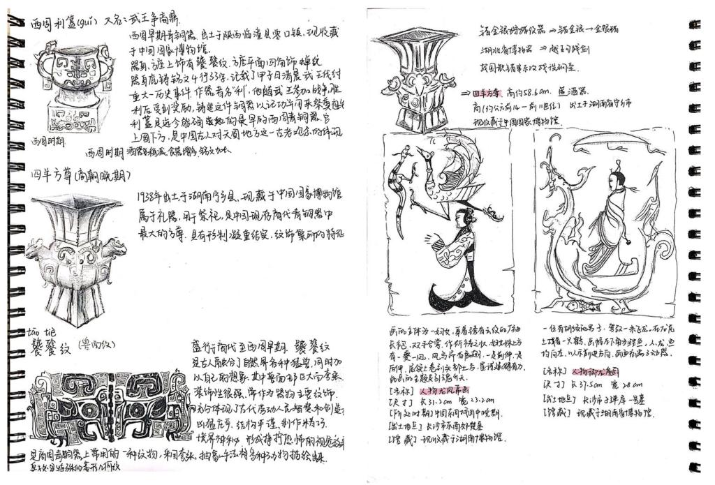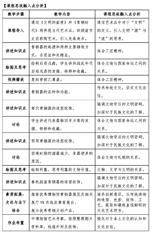 首先是课程思政:中国美术史的教学在提高学生审美趣味、鉴赏能力的同时,理顺文化源流,树立文化自信,不仅挖掘作品、作者背后蕴含的思政元素和哲学思想,还关注到作为文化承载者的文物的发现与收藏。对于出土于抗战年代的后母戊鼎、四羊方尊等与国家命运相连的文物,要求学生在课前搜集文物出土、损坏、修复、收藏的资料,在课堂亲自讲述;对于有着历史积淀的艺术作品,如《清明上河图》、《富春山居图》等,亦由学生讲述故事,在故事中加深对于文物、文化、文明之间关系的思考。(见图一、图二)