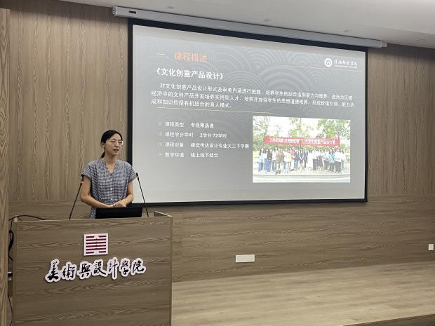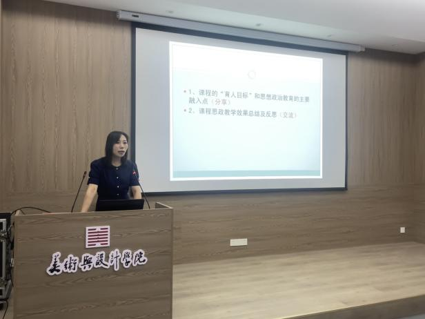 会上,副院长张江波首先介绍了活动的安排和流程,活动第一部分由刘焱、甘露、郑蔚、邹青宸四位老师进行课程思政教学设计说课与经验分享。其中,刘焱老师曾获批省级课程思政样板课、省一流课程,她认为要以学术研究态度对待课程思政教育教学,要遵循“价值塑造、能力培养、知识传授”的教育教学理念。结合专业特点,采用潜移默化、润物无声的方法融入德育元素。甘露老师曾获批省级课程思政样板课,她认为应该将课程内容作为主线,思政内容作为暗线贯穿整个教学过程,并且在融入时不能生搬硬套,要从学生的兴趣点见缝插针。郑蔚老师的《红二十五军的长征》书籍设计入选百年风华“君匋”第二届全国书籍装帧艺术展,她认为在书籍设计教学与设计实践中应融入大别山红色精神基因传承及地域文化,从而为课程铸魂。邹青宸老师获得第四届校长教学质量奖,她认为要从文化自觉、文化自信、文化自强三个方面融入思政元素,培养符合新时代创新需求的应用型人才。活动第二部分,全体教师分享了本人所授课程的思政教学设计思路和经验,并进行了充分意见交换和热烈讨论。