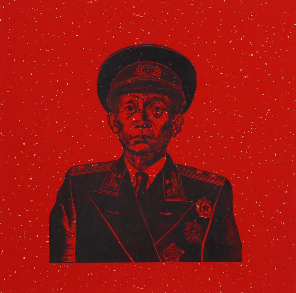 朝晨《开国将军系列之吴先恩将军》版画50x50cm 2017